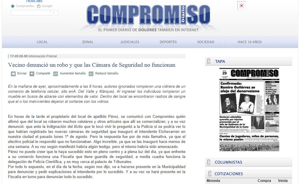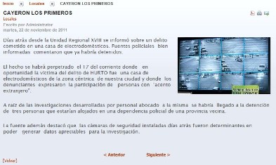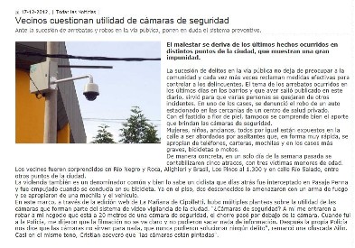 Este artículo comenta y reclama distintas situaciones captadas por el sistema de Monitoreo Urbano instalado donde las cámaras pudieron captar a los involucrados en más de una oportunidad pero los mismos no pudieron ser identificador y no aportaron elementos a la causa.