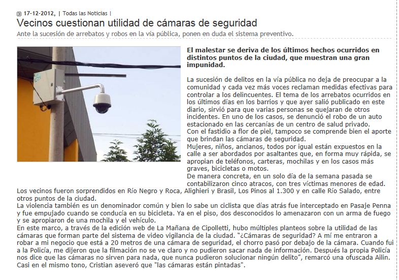 Este artículo, menciona distintos problemas del sistema de Monitoreo Urbano como son Cámaras que no funcionan -
